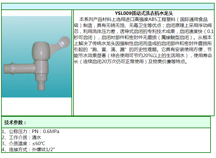【產(chǎn)品型號】YSL009撥動式洗衣機水龍頭