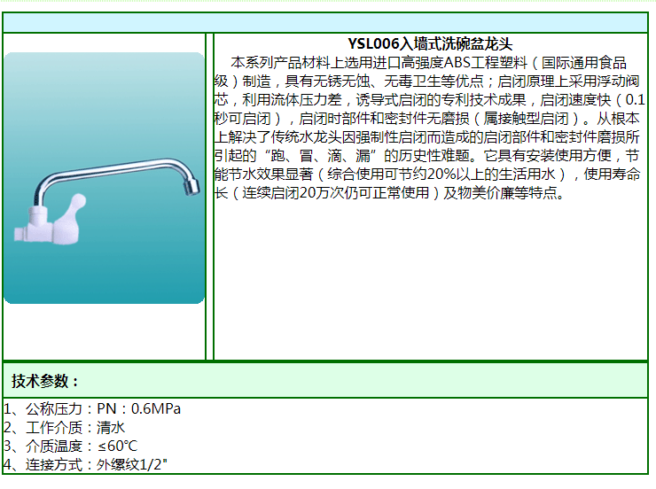 【產品型號】YSL006入墻式洗碗盆龍頭