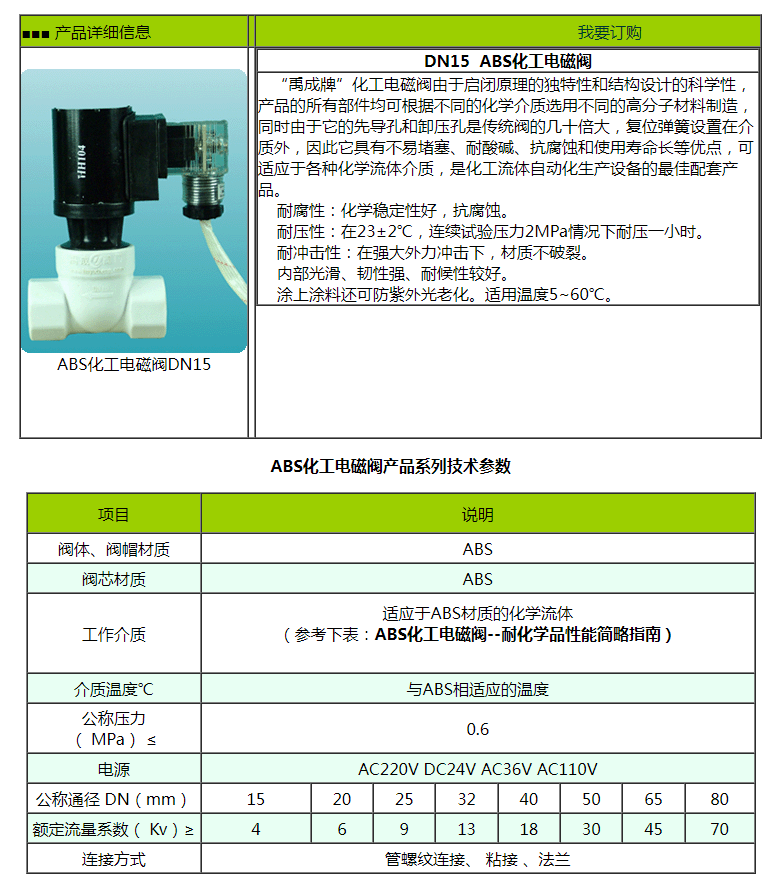 【產(chǎn)品型號(hào)】DN15 ABS化工電磁閥