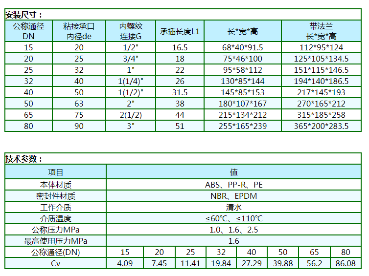 本產(chǎn)品民用系列選用國際通用型食品級工程塑料(ABS、PP-R、PE等)注造。工業(yè)用系列選用進口阻燃型高強度工程塑料(PC等)注造。產(chǎn)品具有重量輕、耐腐蝕、不生銹、不結(jié)垢、導(dǎo)冷不結(jié)霜、導(dǎo)熱系數(shù)低,絕緣性能好,環(huán)保衛(wèi)生等優(yōu)點。啟閉原理上:采用浮動閥芯,利用流體壓力差,誘導(dǎo)式啟閉的專利技術(shù)成果。因啟閉時無磨損(屬接觸型啟閉),而解決了傳統(tǒng)閥門因強制性啟閉而造成的啟閉部件和密封件磨損所引起的“跑、冒、滴、漏”的歷史性難題。它具有安裝使用方便,節(jié)能節(jié)水效果顯著(可節(jié)約傳統(tǒng)閥門的外泄內(nèi)漏所浪費掉的水),使用壽命長及物美價廉等特點。